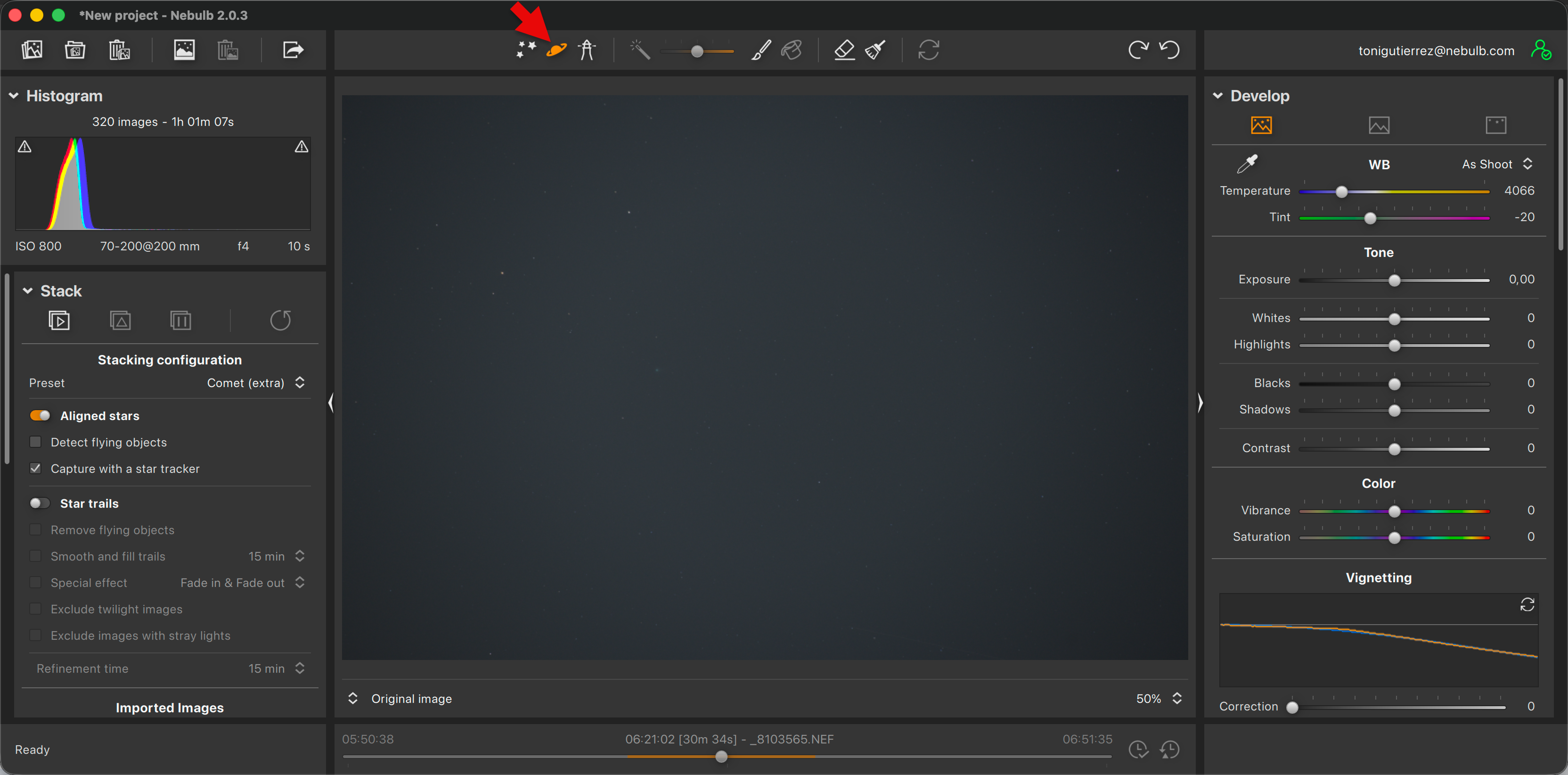 Once the stacking process is complete, the tool panels on the right side of Nebulb will be enabled, and you can apply any adjustments you want.