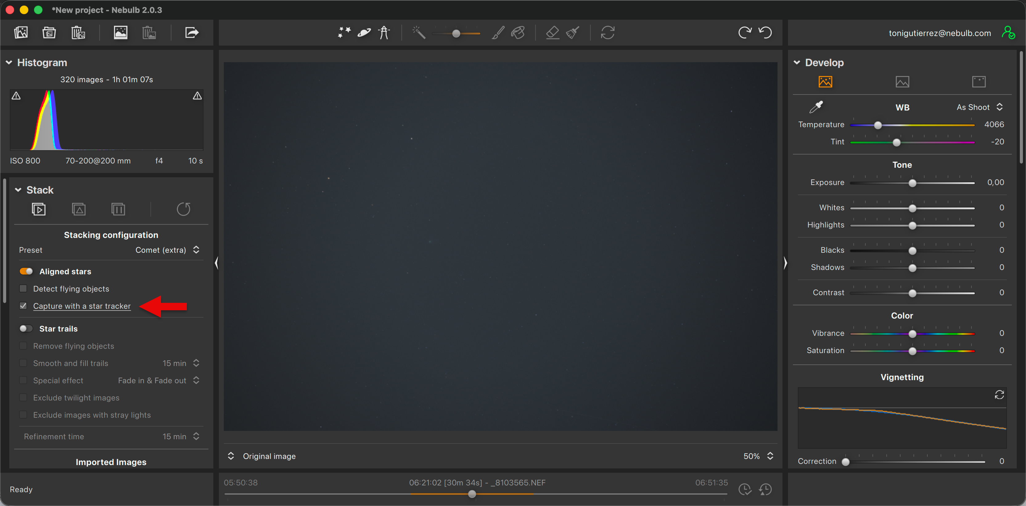 If you captured your images using an equatorial mount (star tracker), make sure to check the box “Capture with star tracker”.