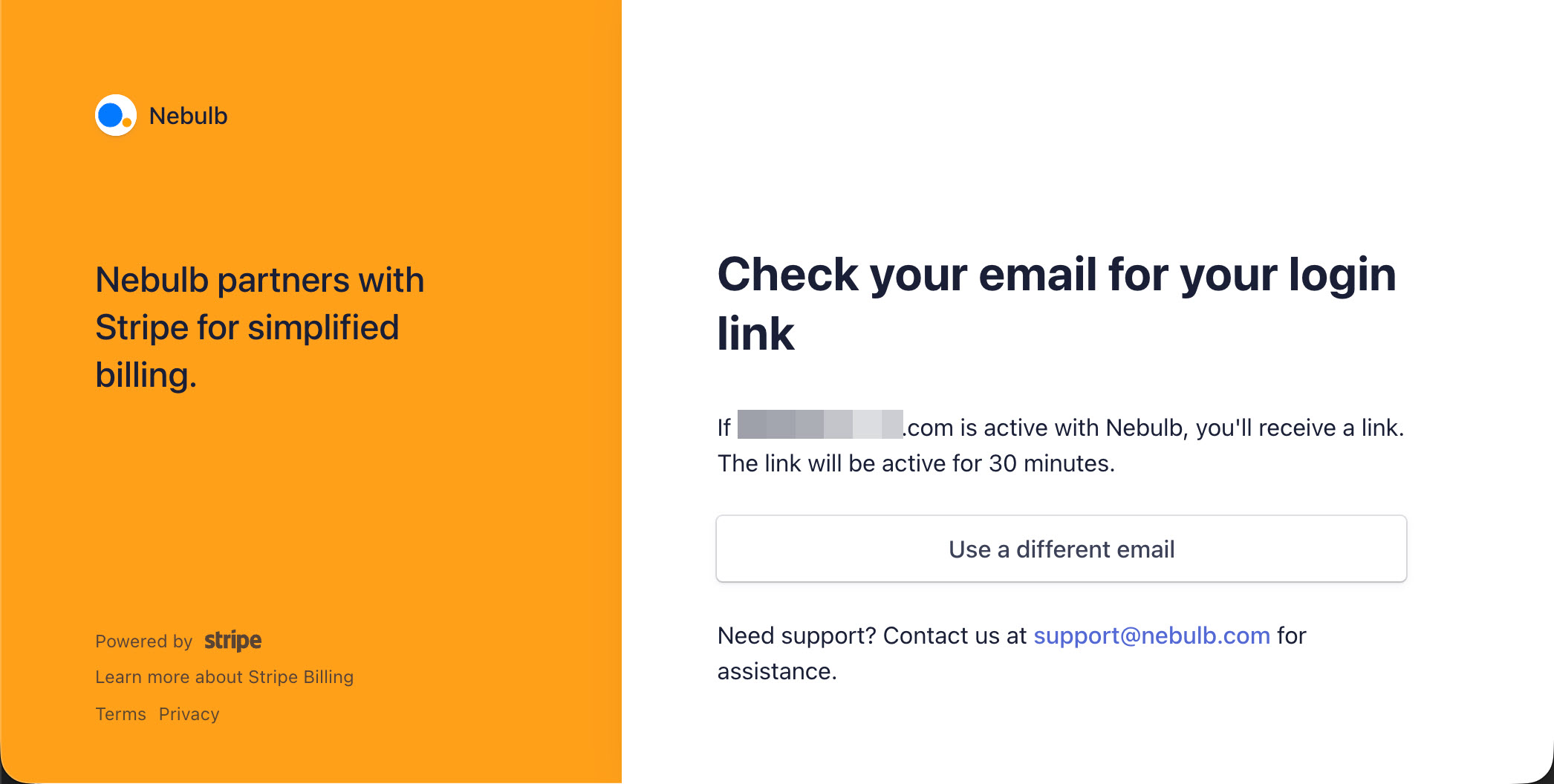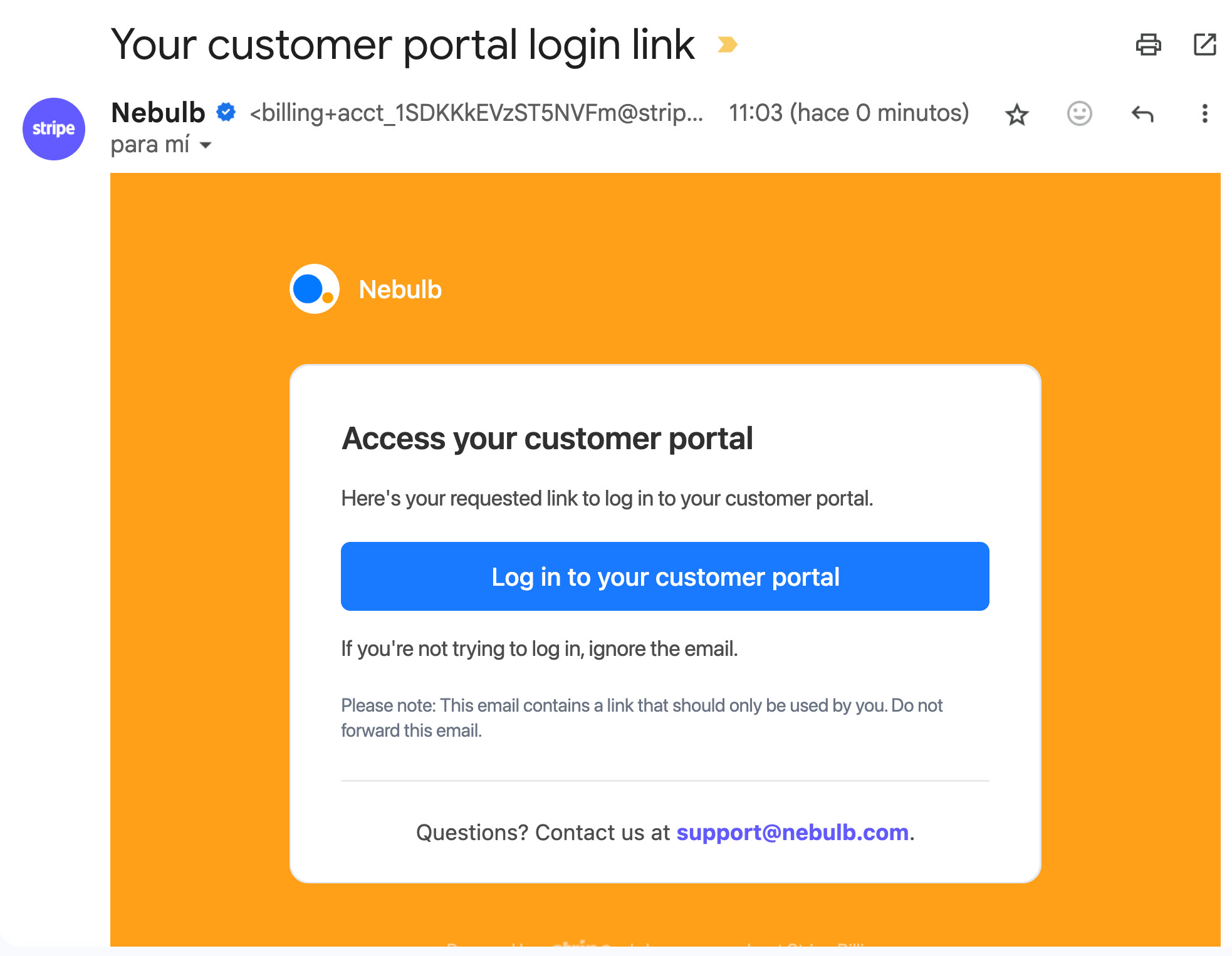 4. Go to your inbox, open the email you received from Nebulb, and click the “Log in to your Customer Portal” button.