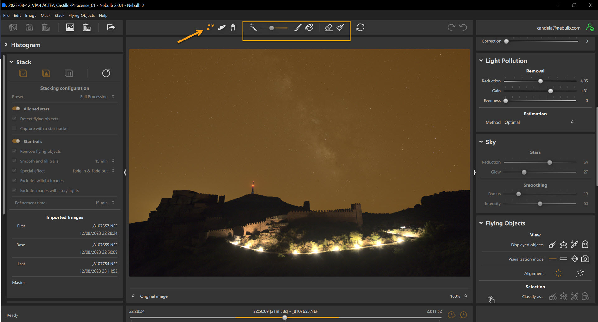 The second step is always to define the sky mask so that Nebulb knows where the stars are in the image.