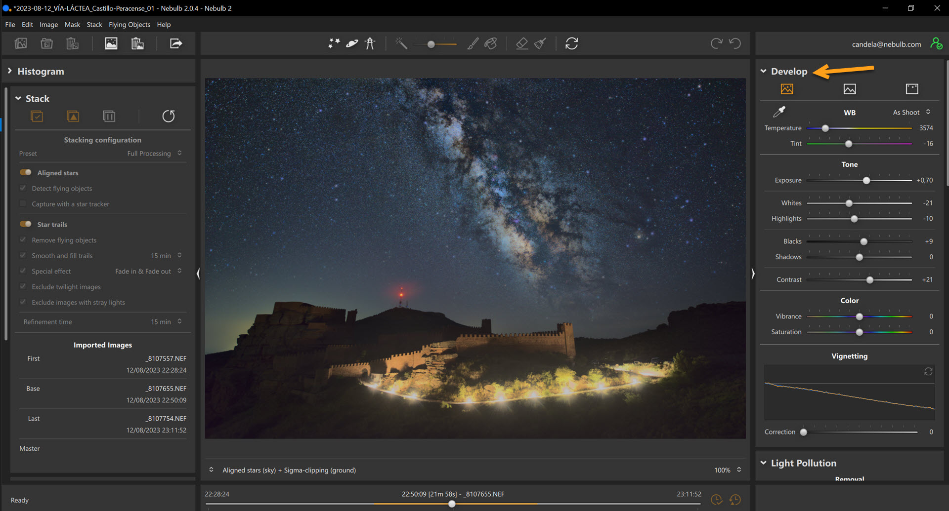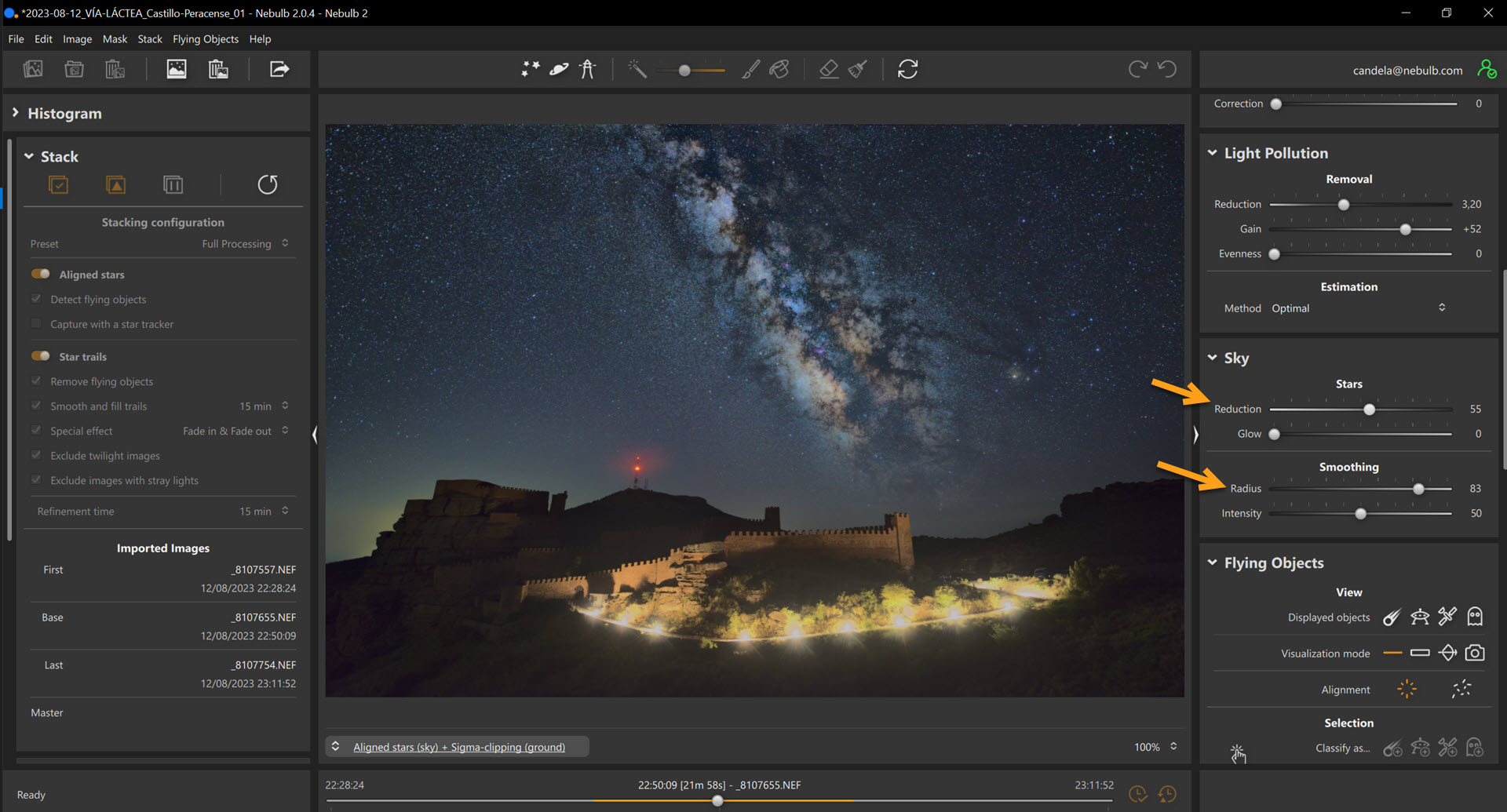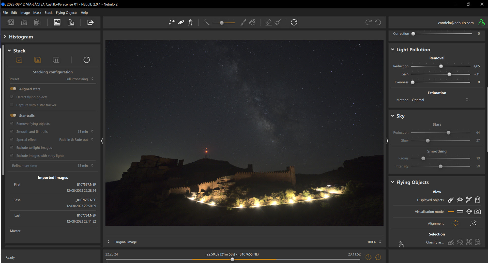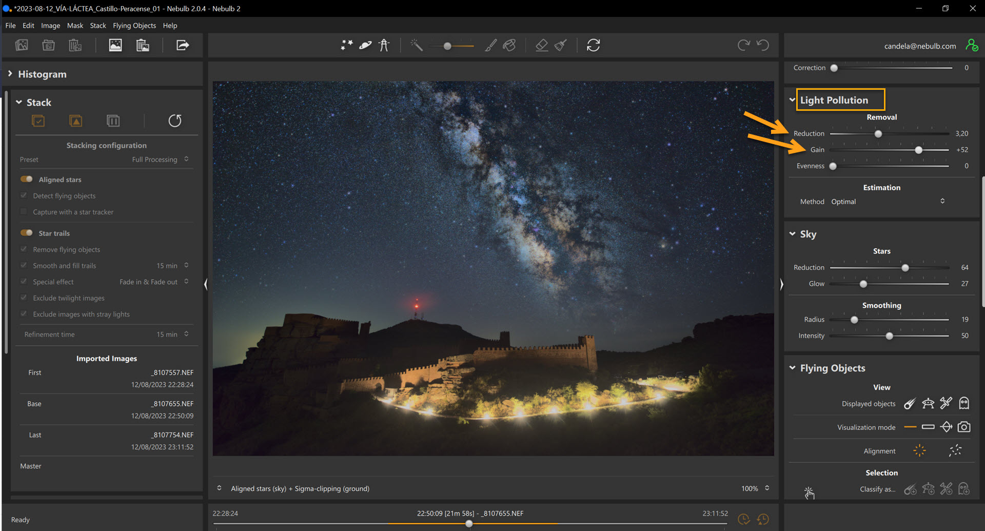 However, in Nebulb it is also possible to apply light pollution reduction on a single image, although, obviously, the level of reduction that can be achieved is lower than when stacking multiple images (mainly due to the noise level).