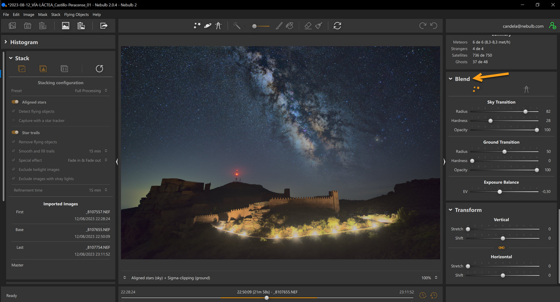 Next you must tell Nebulb to process this individual image in order to apply the light pollution reduction on it, for which you simply click on the following button (within the "Stack" module):