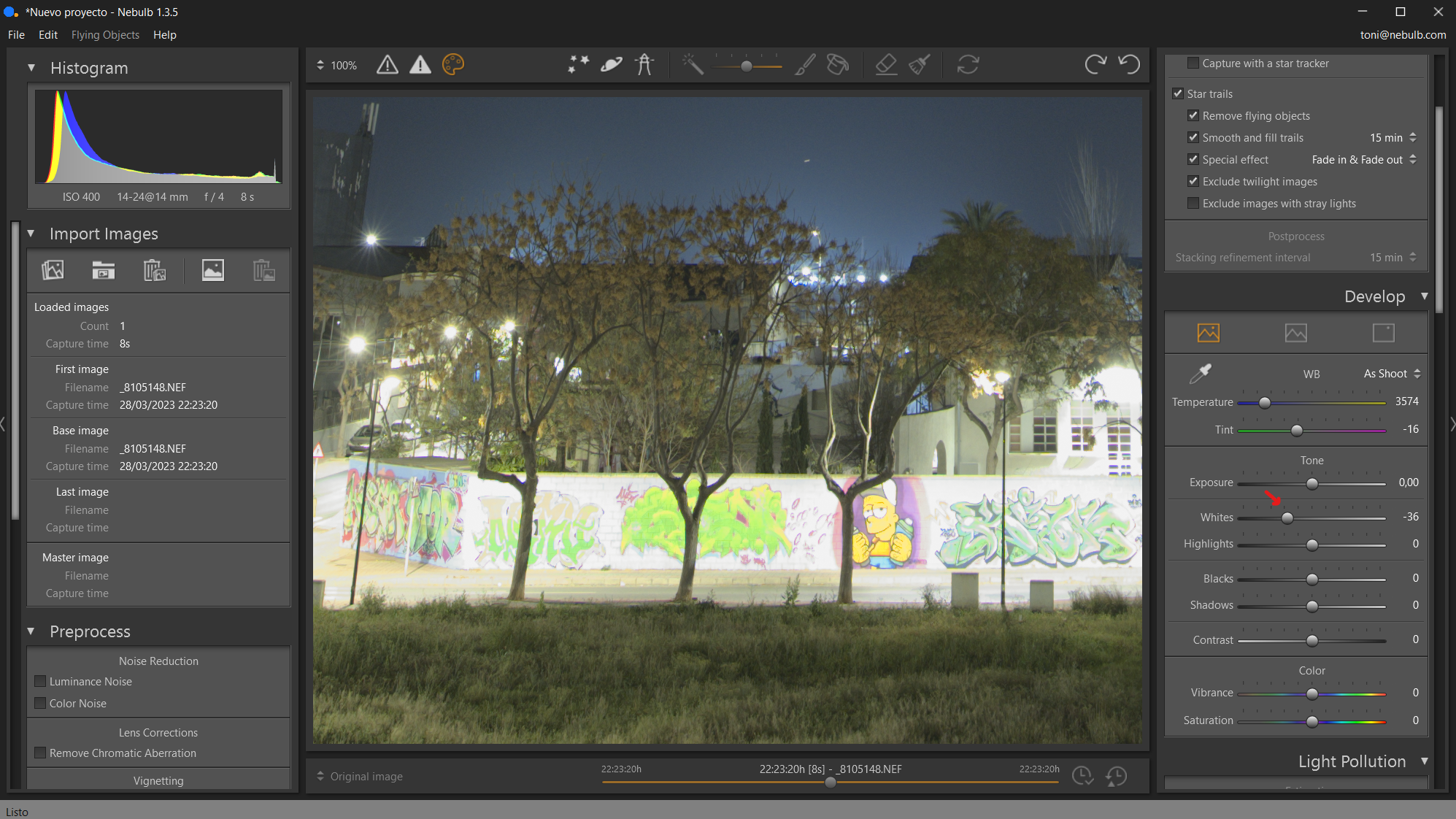 In Nebulb you have a series of development controls to adjust the intensity levels of the image.