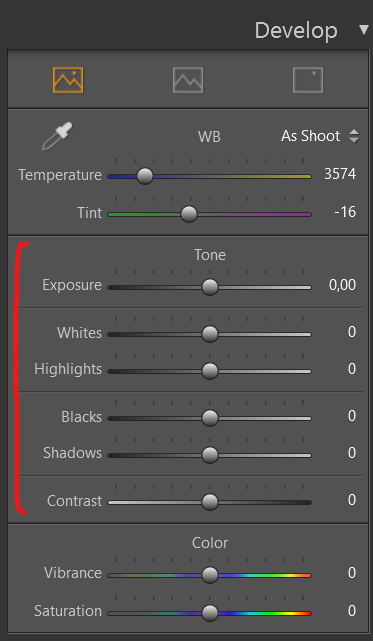 Analogous to the previous settings are the "Blacks" and "Shadows" sliders for the dark areas of the picture.