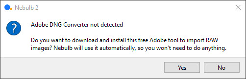 4. Once downloaded, run the installer, Nebulb will ask if you have already installed it; you will have to accept and it will be automatically selected in the Image menu.