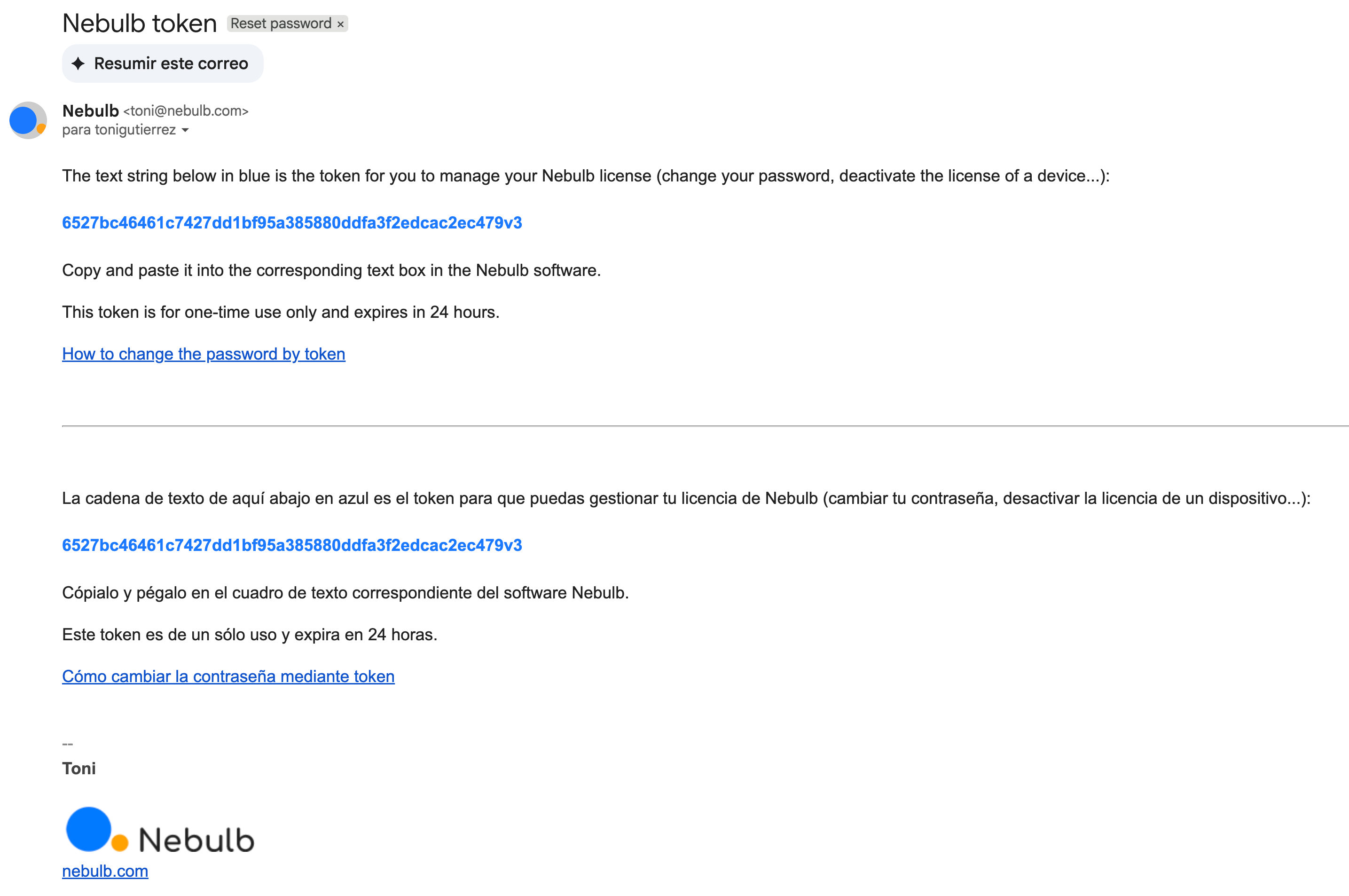 Después ves a la bandeja de entrada de tu correo y busca un nuevo correo de Nebulb, como este: