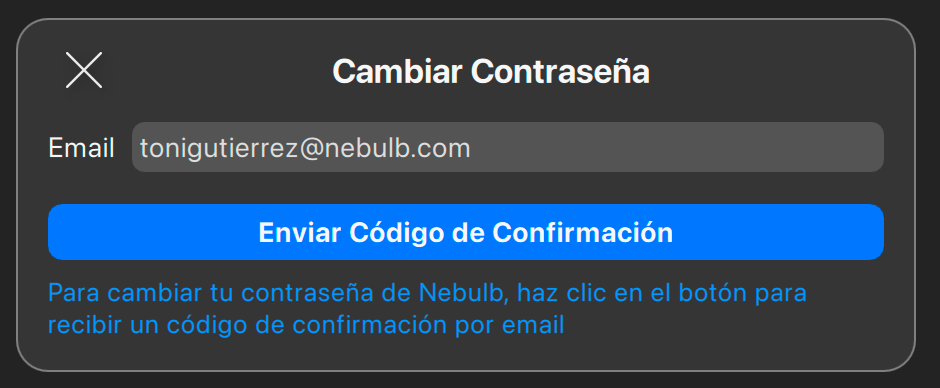 Y al presionar el botón de confirmación tu contraseña de acceso a Nebulb se actualizará.