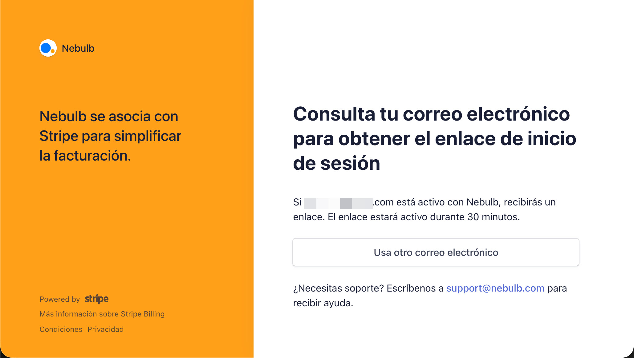 2. Introduce el correo con el que solicitaste la prueba de Nebulb.