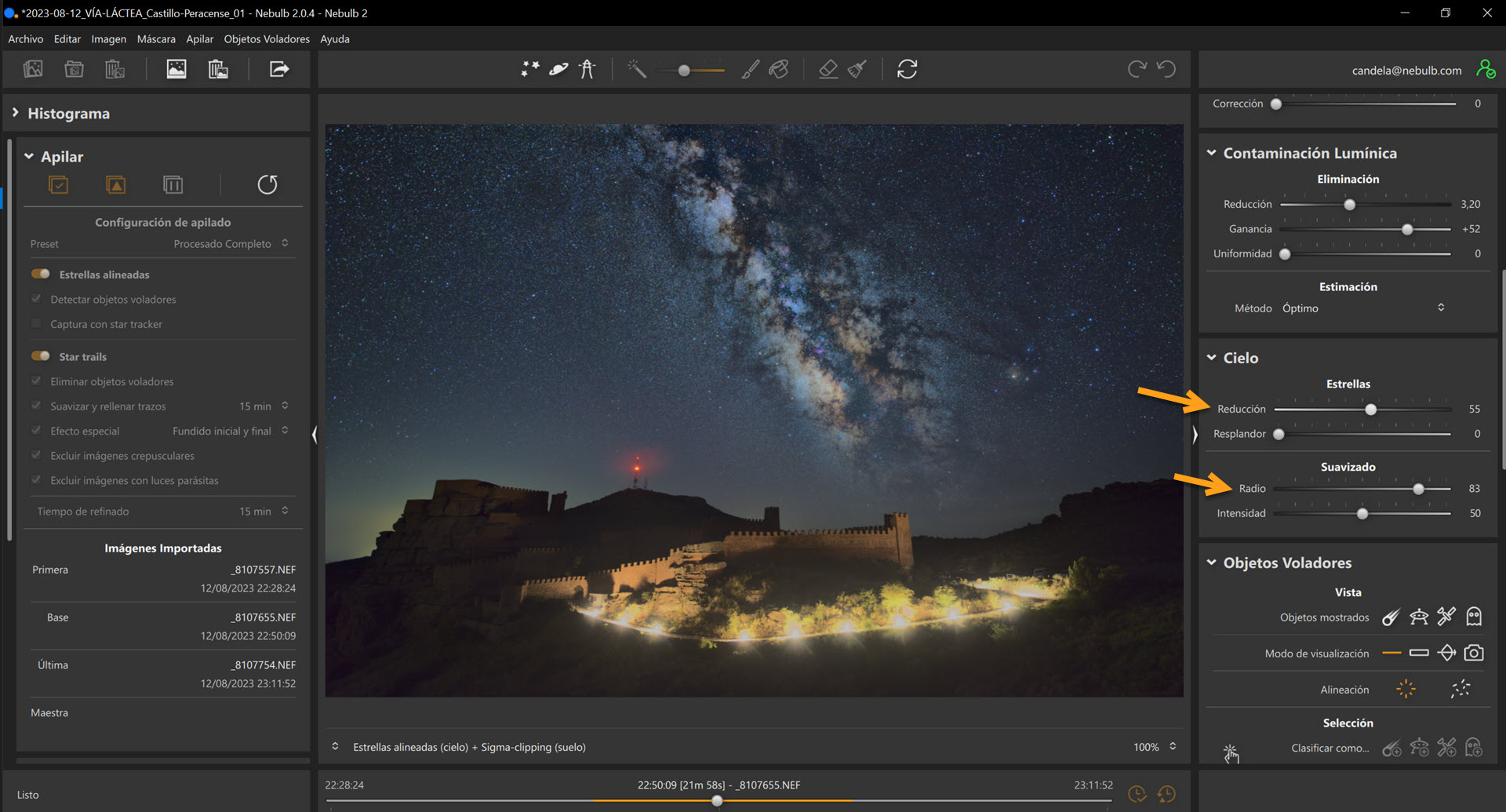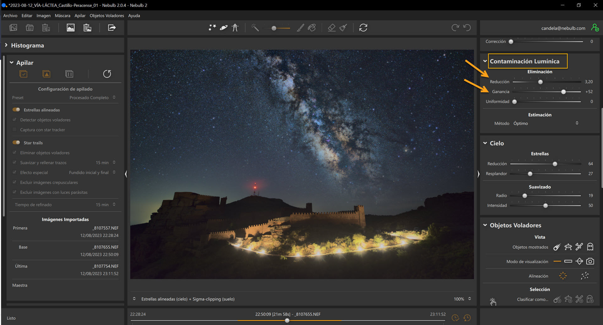 En Nebulb dispones también de un módulo con procesados específicos para mejorar el cielo (reducción de estrellas, resplandor de estrellas y reducción de ruido).