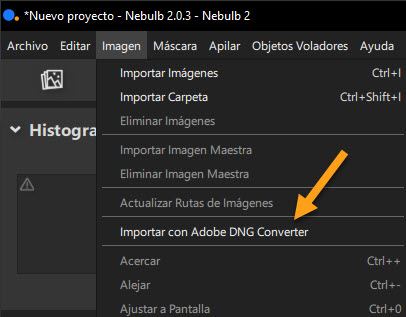 Dicho esto, en el caso de que las fotos ya las hayas capturado en este nuevo formato de Alta Eficiencia (HE/HE*) de Nikon, te recomiendo que las conviertas primero a DNG para poder importarlas luego en Nebulb con las menores pérdidas posibles.