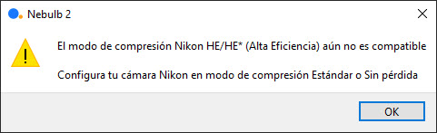 Si, al importar imágenes RAW de alguno de los nuevos modelos de cámara de Nikon (como la Z8 o la Z6 III), te aparecen alguno de estos mensajes que hemos indicado arriba , el motivo es que el nuevo formato de compresión sin pérdidas que ha introducido Nikon (Alta Eficiencia HE/HE*) en sus últimos modelos de cámaras no está soportado todavía por la librería que utiliza Nebulb para interpretar los archivos RAW.